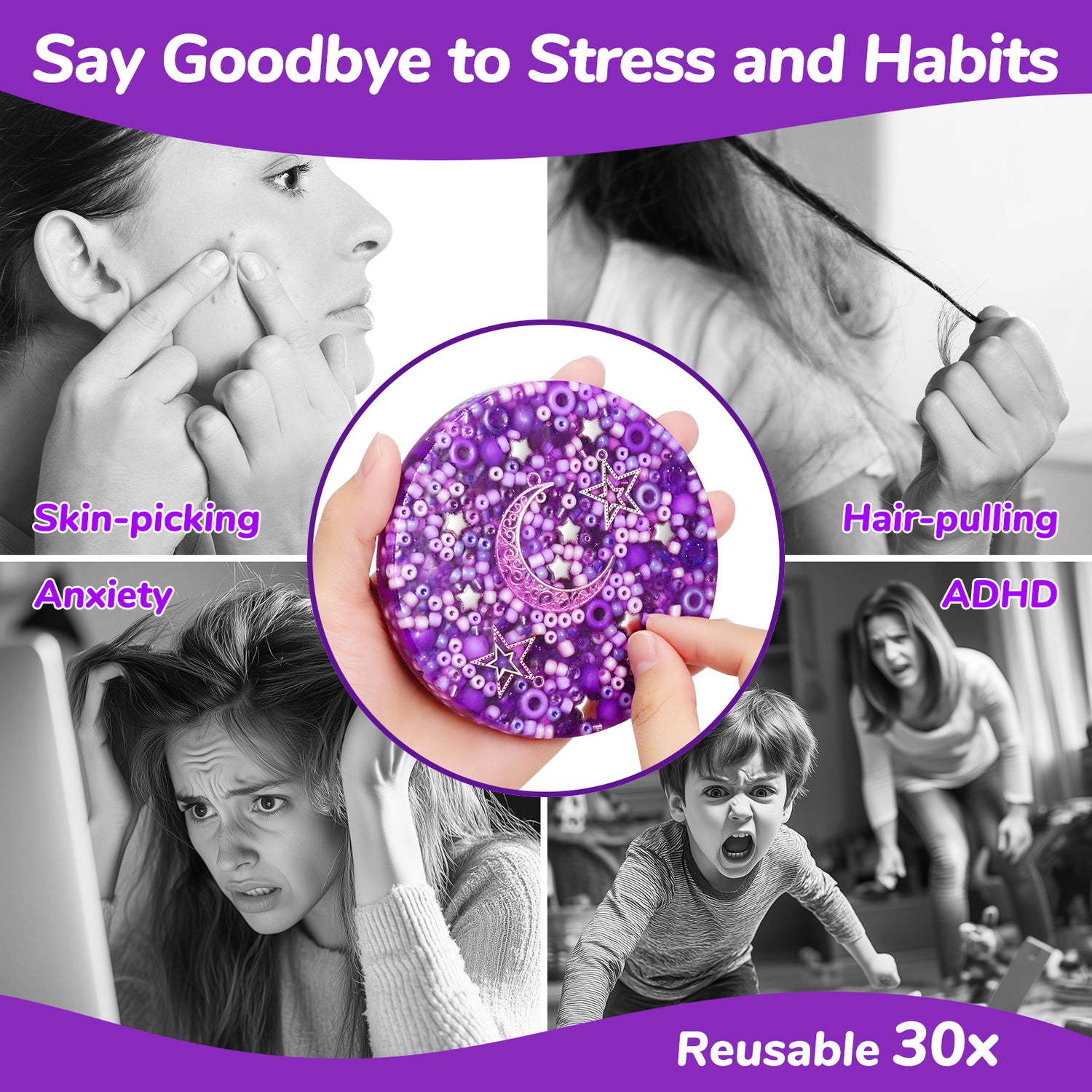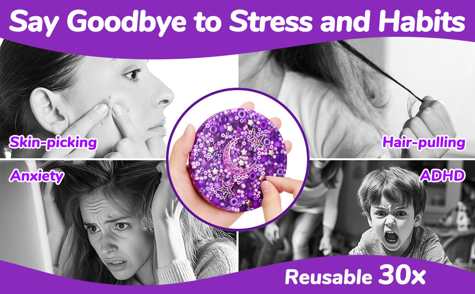- 【Reusable Picky Fidget Pad - Pick, Melt, Repeat】 Our Reusable Picky Fidget Pad Starry Edition is crafted to bring calm and comfort into your everyday life. This picking fidget contains a mix of beads and moon and star charms, providing a sensory experience that is both visually delightful and soothing to touch. Mimics the texture of skin, making this skin picking fidget toy an ideal substitute for skin-picking behaviors. Remelt and reshape it up to 30 times for endless creative possibilities. Specifically designed for those dealing with dermatillomania, ADHD, or anxiety.