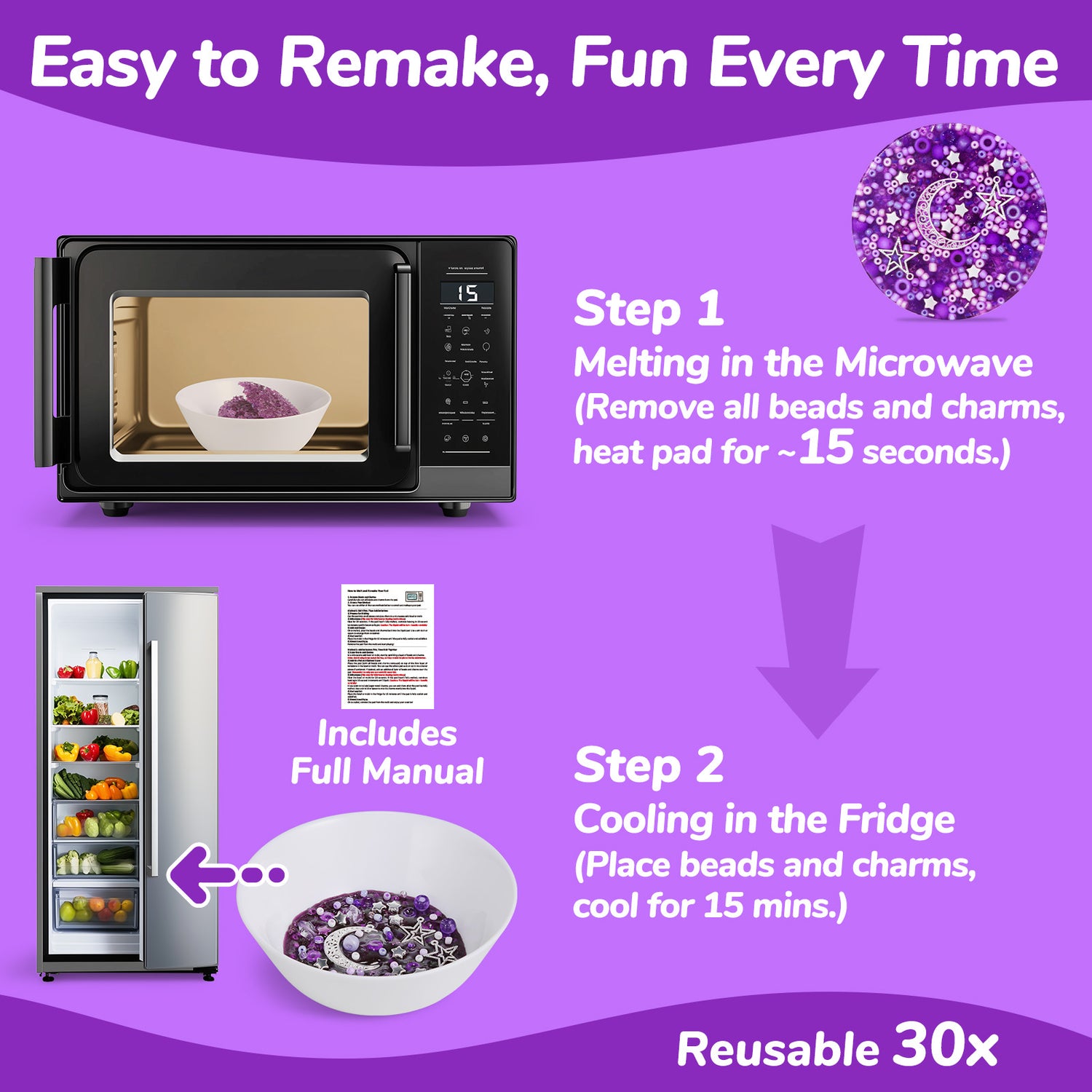- 【Reusable Up to 30 Times: Easy and Eco-Friendly】 Crafted from eco-friendly materials, the picking pad offers a complete sensory experience with fun beads and charms, plus an easy-to-follow user manual. To reuse, simply pick out all the inclusions, cut the pad into pieces, and microwave until melted. Reintroduce the beads and charms, and stir well. Let it cool in the fridge for 15 minutes, and your pad is ready to be used again. This process can be repeated up to 30 times, providing both lasting value and endless fun.